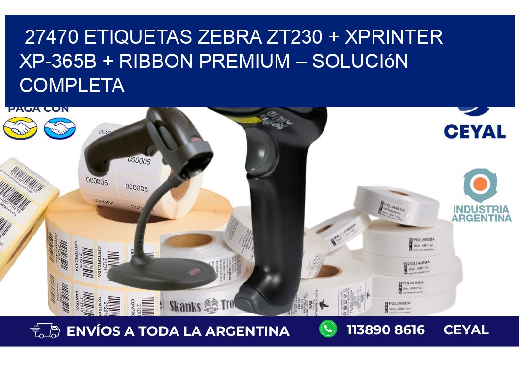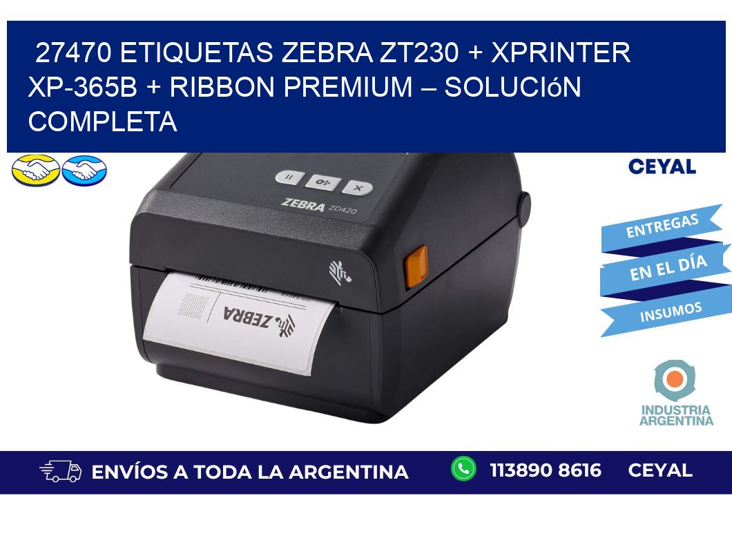 27470 ETIQUETAS Zebra ZT230 + Xprinter XP-365B + Ribbon Premium – Solución completa