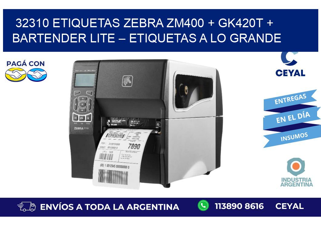 32310 ETIQUETAS Zebra ZM400 + GK420T + BarTender Lite – Etiquetas a lo grande