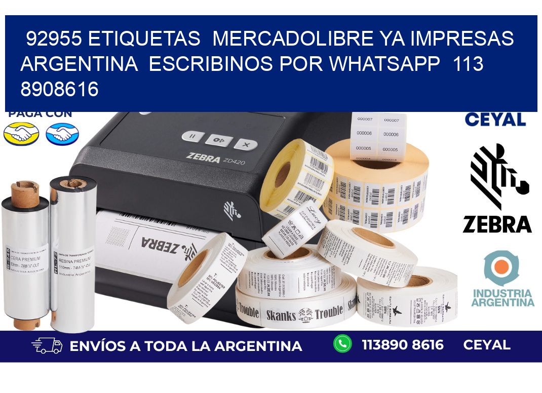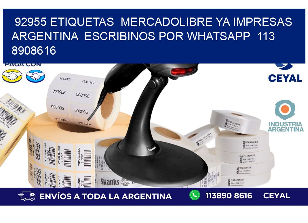 92955 ETIQUETAS MERCADOLIBRE YA IMPRESAS ARGENTINA ESCRIBINOS POR WHATSAPP 113 8908616