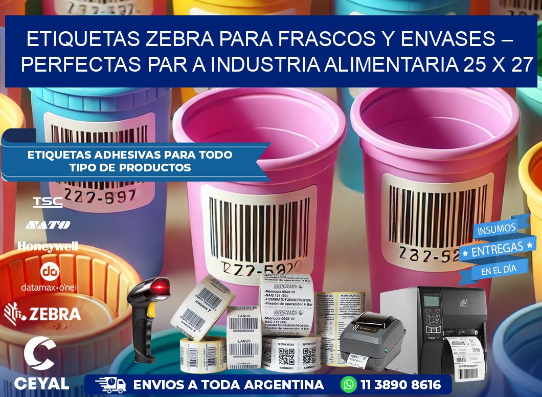 Etiquetas Zebra para Frascos y Envases – Perfectas par a Industria Alimentaria 25 x 27
