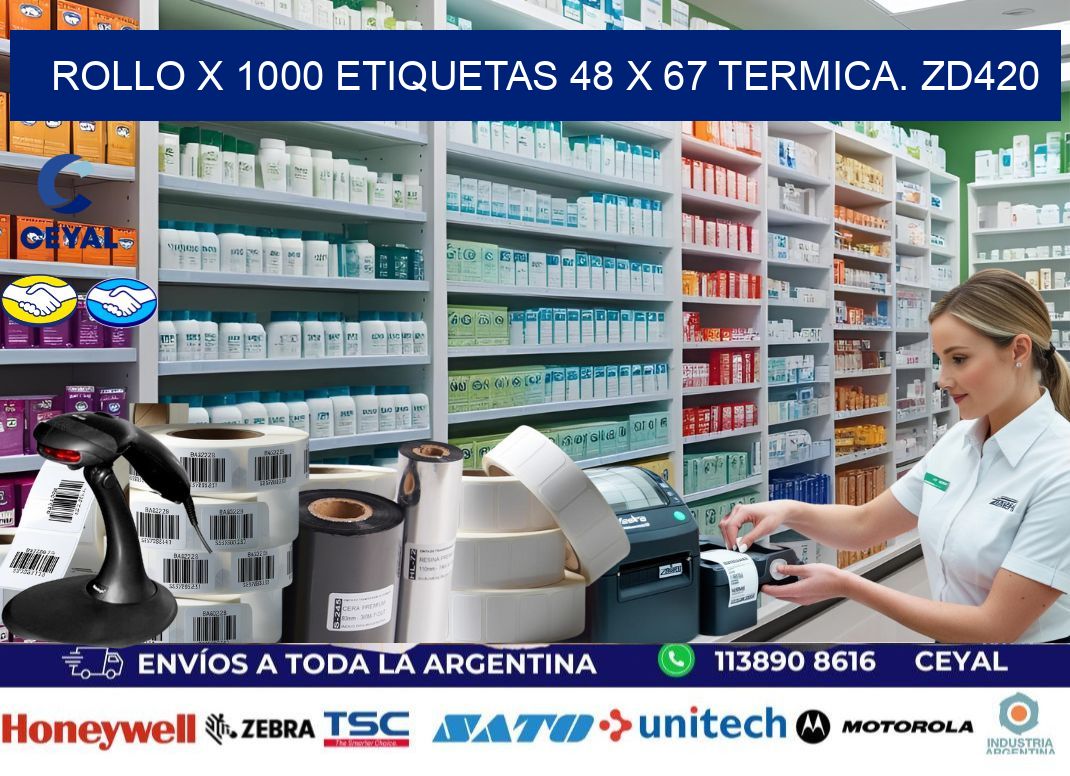 Rollo X 1000 etiquetas 48 x 67 termica. zd420