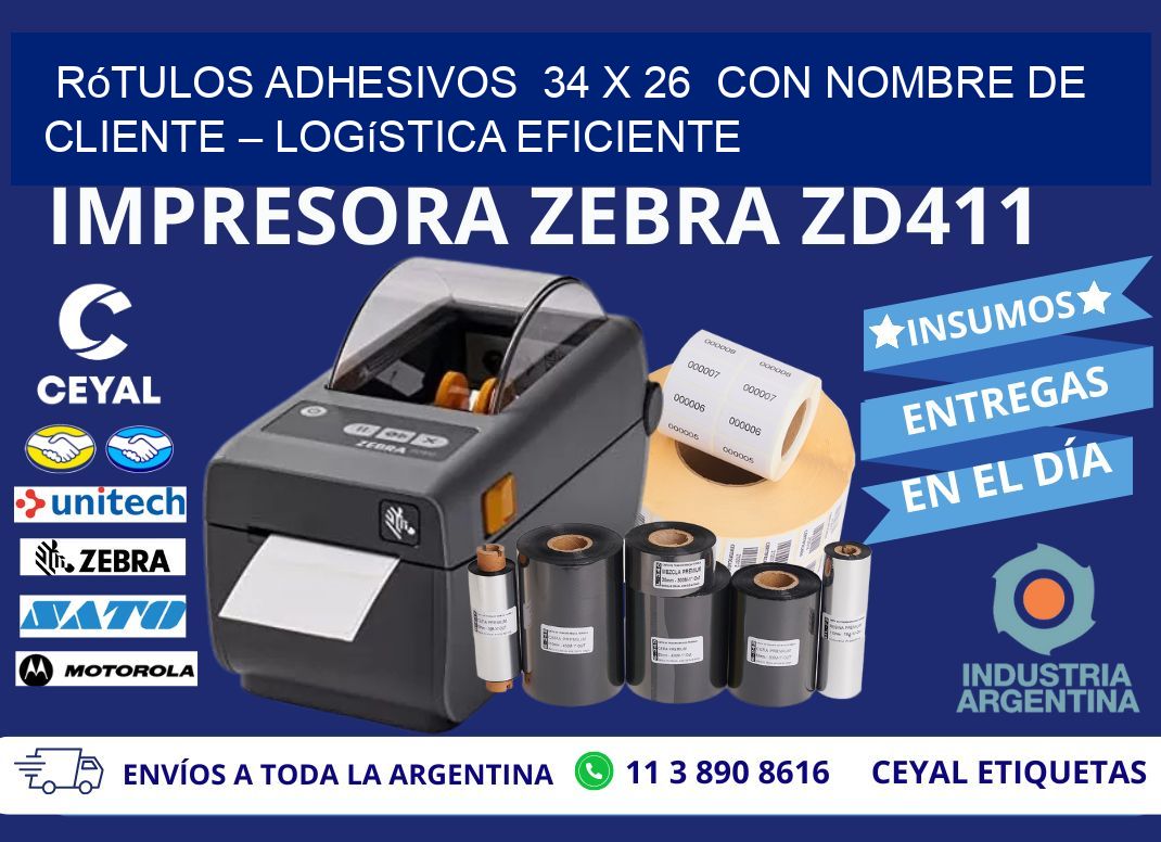 Rótulos Adhesivos  34 x 26  con Nombre de Cliente – Logística Eficiente