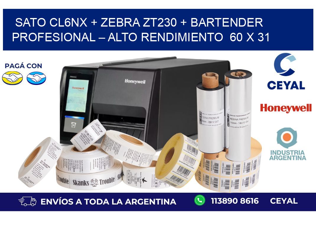 SATO CL6NX + Zebra ZT230 + BarTender Profesional – Alto rendimiento 60 x 31