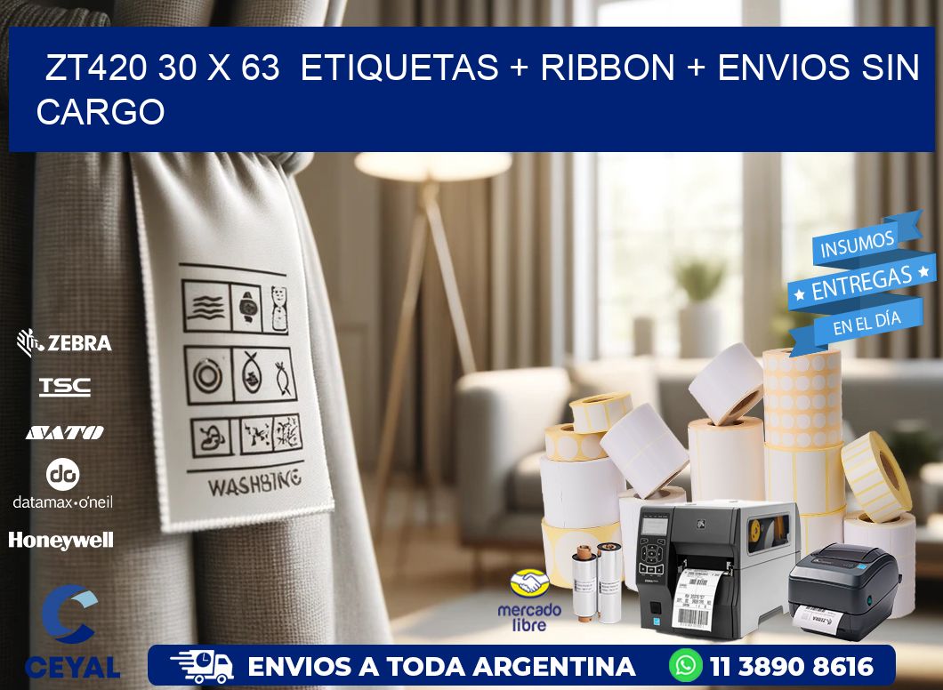 ZT420 30 x 63  etiquetas + ribbon + envios sin cargo